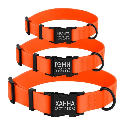 Пропонуємо до вашої уваги нашу новинку - надміцні водовідштовхувальні нашийники для собак на нейлоновій основі із захисним полімерним шаром. Унікальний, неймовірно міцний і довговічний матеріал забезпечує зносостійкість нашийника в будь-яких умовах - він не вбирає вологу, бруд, запахи, не важчає у воді, залишається гнучким навіть за екстремальних температур. Нашийник не розтягується, витримує дуже великі навантаження. Завдяки своїй міцності цей ошийник відмінно підійде для собак великих порід. Він легко миється під проточною водою, не вимагає просушування та особливого догляду. Це вдалий вибір для собак, які люблять активний відпочинок і не хочуть витрачати час на догляд за амуніцією. Нашийник укомплектований міцною металевою пряжкою з можливістю нанесення гравіювання. На пряжці можна нагрівати будь-яку інформацію, наприклад: кличка домашньої тварини, контактні дані, адреса, номер мікрочіпа тощо. На нашийнику розміру XS, S бажано розміщувати не більше 2 рядків гравіювання. Текст наноситься за допомогою лазера, тому з часом він не стирається і не тьмяніє. Нашийник доступний у таких кольорах: рожевий, зелений, блакитний, оранжевий та чорний. Щоб вибрати відповідний за розміром нашийник, виміряйте обхват шиї вашої собаки гнучкою сантиметровою стрічкою і звірте дані з інформацією в таблиці.