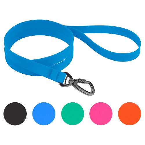 Погляньте на нашу нову серію водонепроникних повідців для собак у яскравих кольорах! Водонепроникні повідці для собак зроблені з нейлонової стрічки, покритої ПВХ (полівінілхлоридом). Цей матеріал має попит завдяки його довговічності і приголомшливим водовідштовхувальним властивостям. Ще одна перевага ПВХ полягає в тому, що він зовсім не вбирає води, бруду чи запахів. Водовідштовхуючий повідець комфортний в експлуатації і для вихованця, і для господаря. Також його дуже легко мити, так як можна робити це просто під проточною водою.