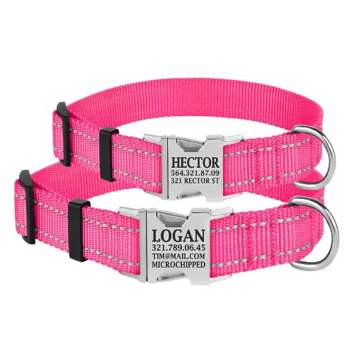 Нейлоновий нашийник зі світловідбиттям для собак ТМ BronzeDog легкий, міцний та надійний. Він виконаний із матеріалів найвищої якості. Високоміцний нейлон, з якого виготовлений нашийник, не втрачає колір під час прання і не вигоряє на сонці. Нашийник виконаний із вплетенням світловідбиваючої нитки та укомплектований міцною металевою пряжкою з можливістю нанесення гравіювання. На пряжці можна нагрівати будь-яку інформацію, наприклад: кличка домашньої тварини, контактні дані, адреса, номер мікрочіпа тощо. На нашийнику розміру S бажано розміщувати не більше 2 рядків гравіювання. Текст наноситься за допомогою лазера, тому з часом він не стирається і не тьмяніє. Цей нашийник м'який на дотик, гнучкий, не боїться води, практичний і невибагливий у догляді.