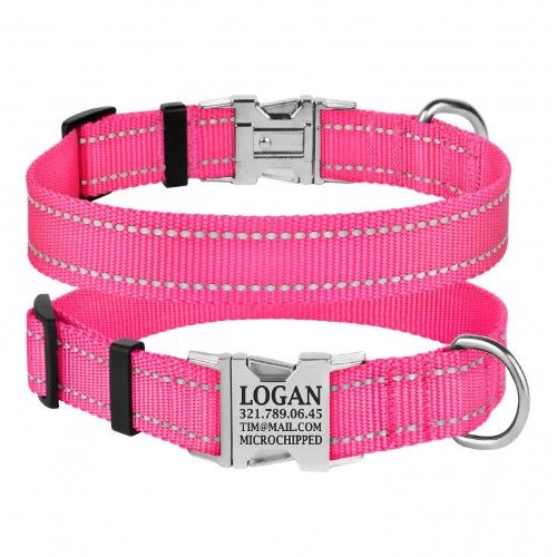Нашийник для Собак BronzeDog Active Нейлоновий зі Світловідбиттям та Металевою Пряжкою Рожевий L(34/1306/Т)