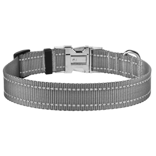 Нашийник для Собак BronzeDog Active Нейлоновий зі Світловідбиттям та Металевою Пряжкою Сірий M(33/1311/Т)